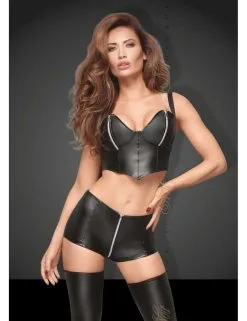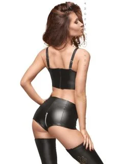 Mini short wetllook dotĂ©e d’un zip double sens au niveau de l’entre jambe.