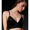 Soutien-gorge sans armatures et attache derrière la nuque.