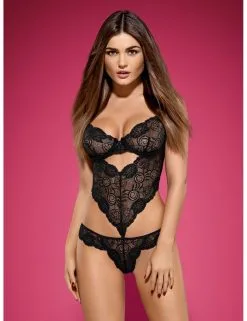 Des découpes et de la transparence pour définir ce body fait de dentelle florale et graphique dans une confection avec maille ajourée.