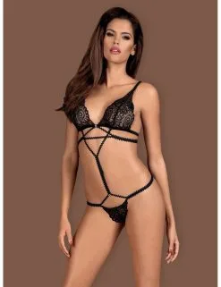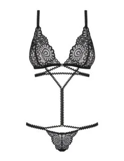 Une lingerie minimaliste avec ce body confectionné de dentelle avec motif floral et galons fins extensibles. Maille souple et douce. Joli jeu de croisé sur l’avant.