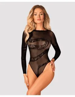Body noir en fine résille fait dans une maille agréable qui enveloppe parfaitement le corps.