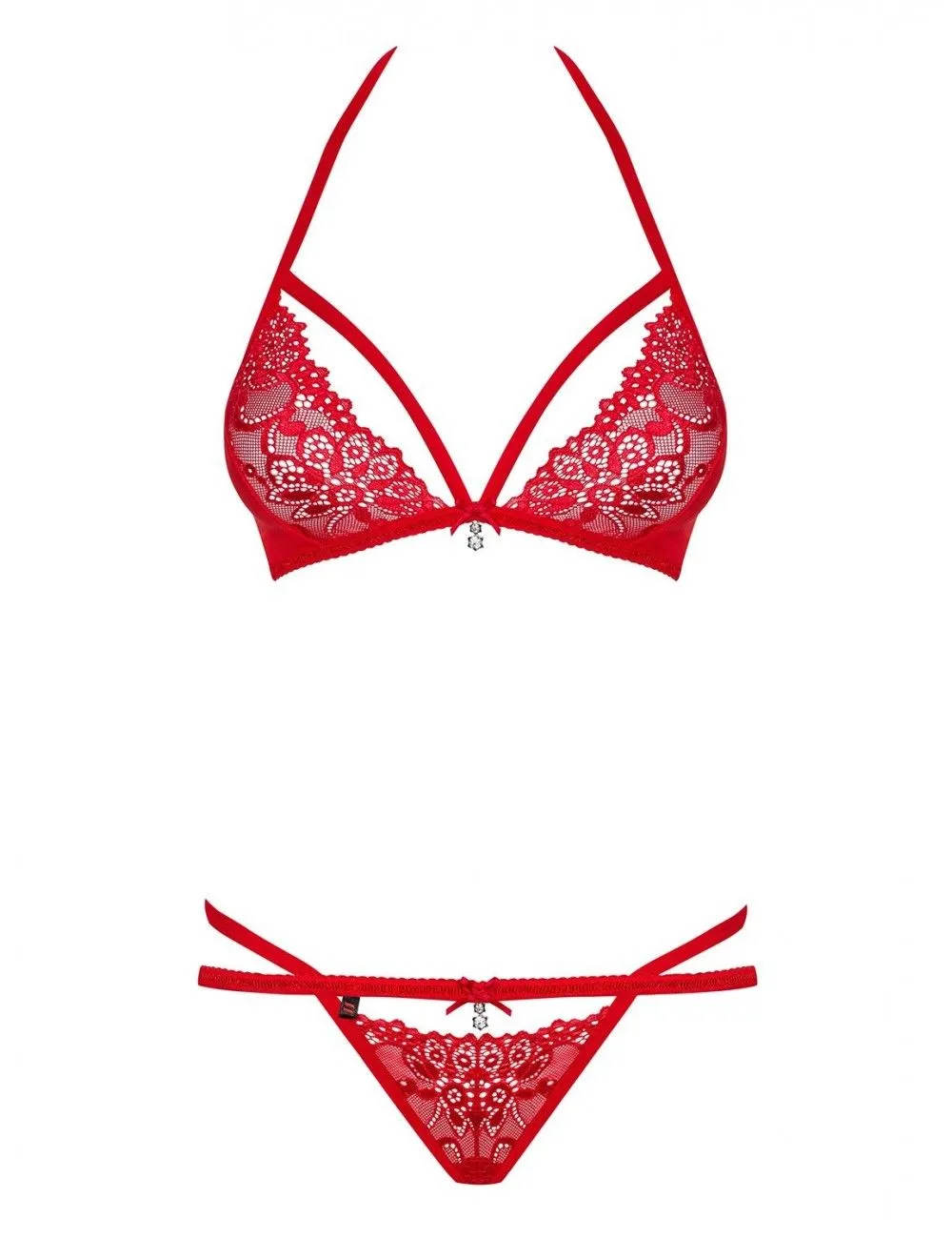 Belle composition pour cet ensemble lingerie dans un rouge intense.