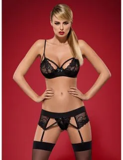Bonnets avec armatures et demi balconnets. La partie haute du soutien-gorge est en dentelle souple avec de fines lanières pour mettre en valeur le galbe de la poitrine.