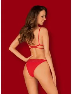 Soutien-gorge et culotte assortis, d’un rouge intense.