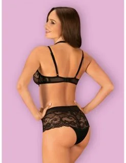Craquez pour cet ensemble Soutien-gorge et Shorty, confectionné en dentelle noire et au design fantaisie ! Votre amoureux vous chuchotera des confessions séduisantes toutes la nuit !