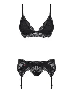 Ensemble lingerie 3 pièces noir tout en sensualité et délicatesse.