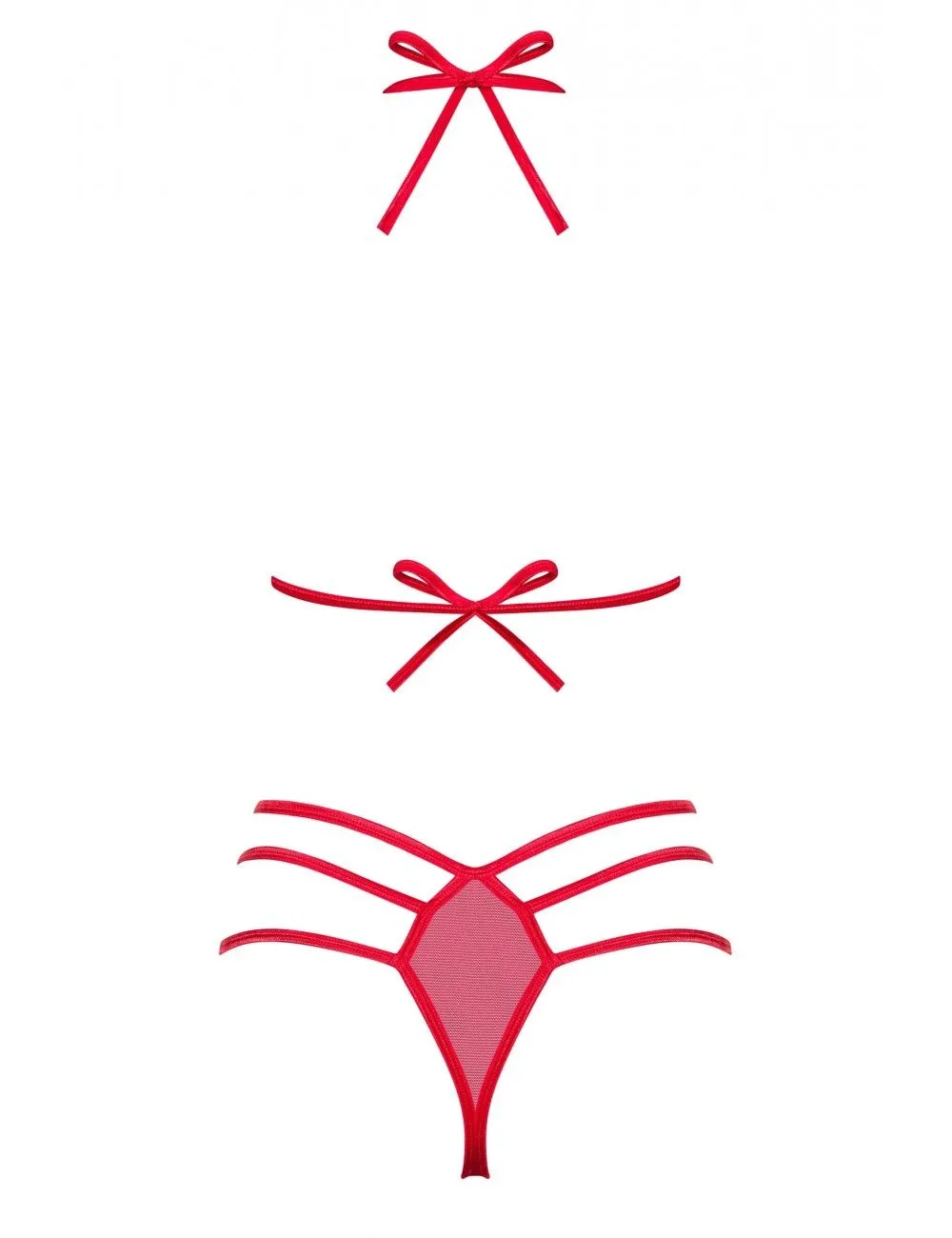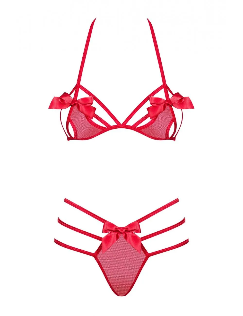 Comme un cadeau, cette lingerie met en valeur vos atouts. Jeu d’ouverture avec les lanières. Les noeuds attirent l’attention.