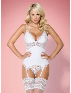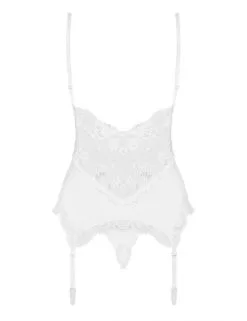 Enfilez facilement cette lingerie blanche Corsia avec cette guêpière tout en sensualité confectionnée en bi matière.