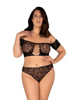Ensemble de lingerie en maille noir semi transparente composé de deux pièces.
