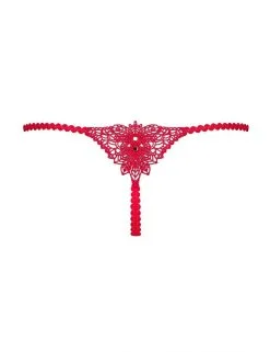 String ficelle fait de dentelle avec motif floral dans un rouge ardent et empiècement d’une broderie au dos. Une conception discrète sous vos vĂŞtements mĂŞme moulants.