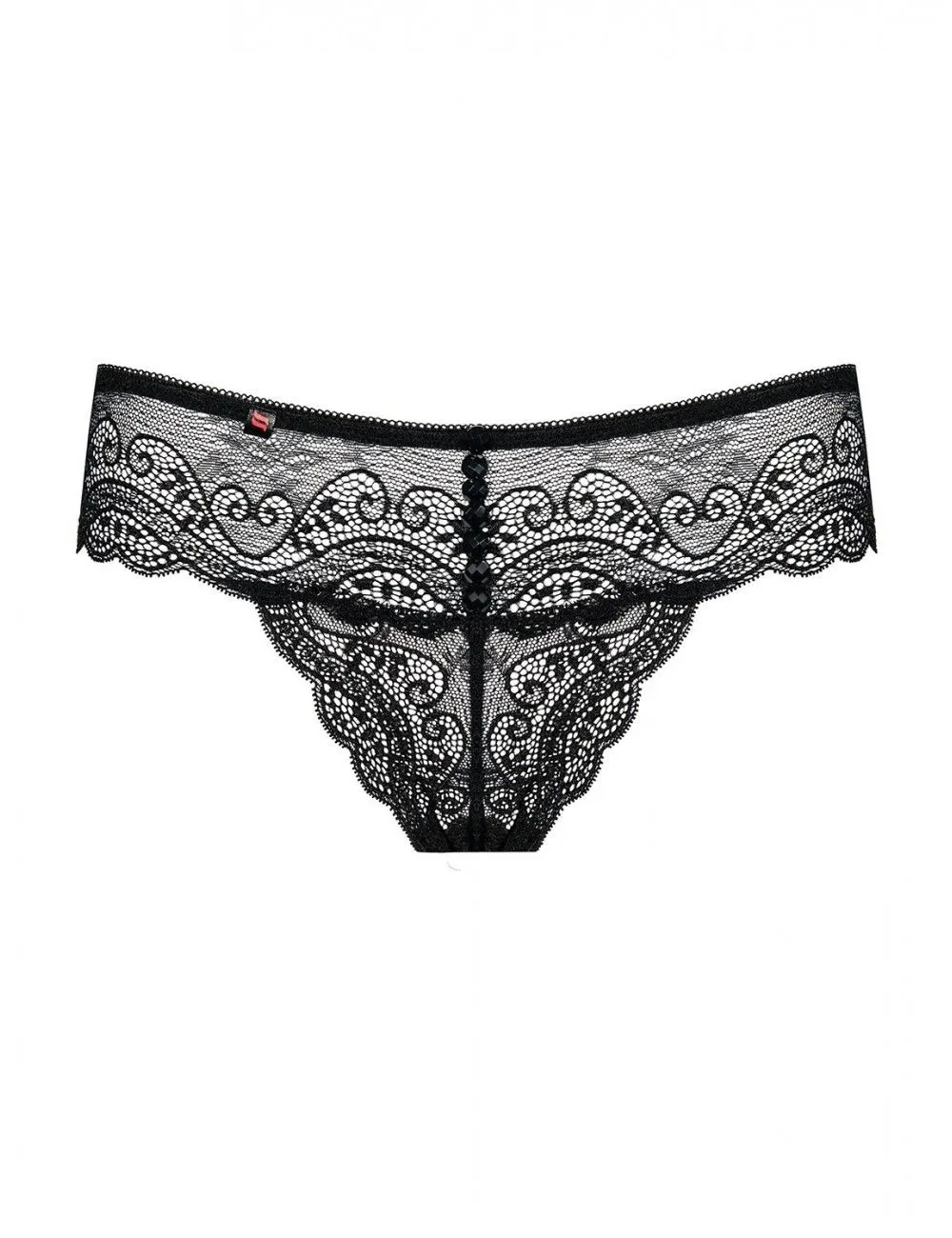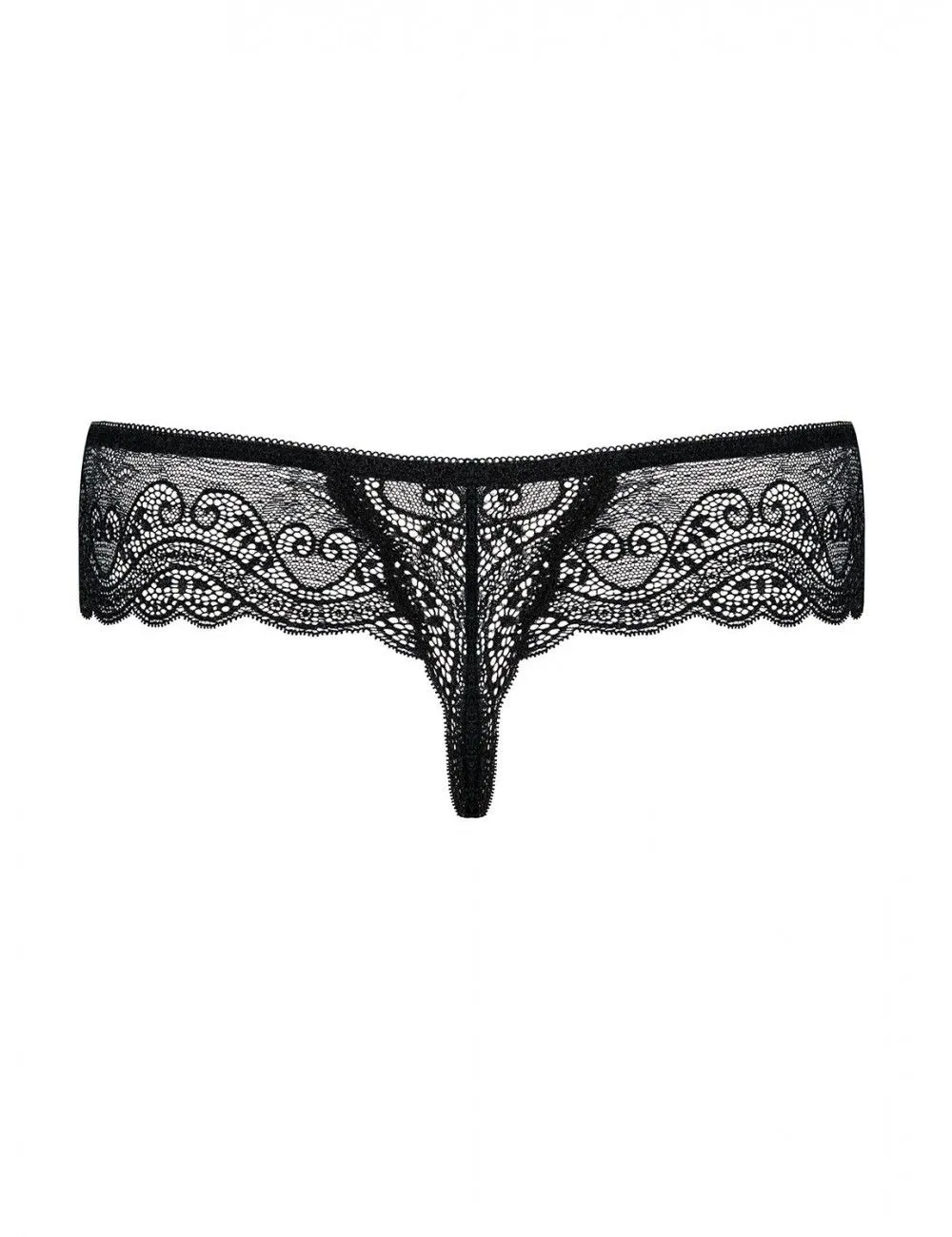 String féminin sensuel et très élégant confectionné entièrement avec empiècements de dentelle fine avec motif sur fond transparent.