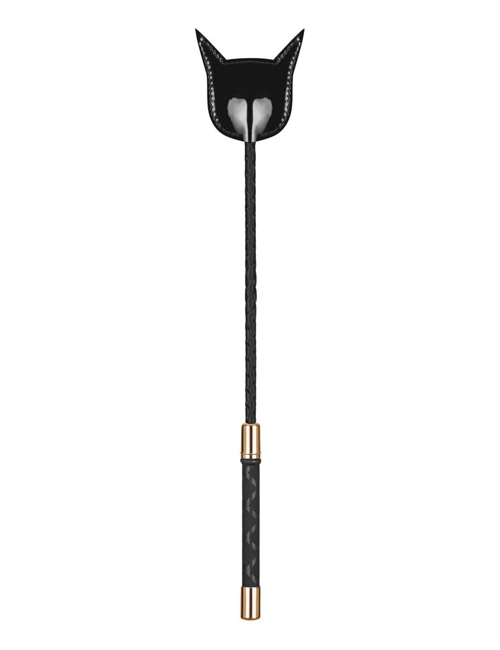 Une tapette longue et élégante noire avec des empiècement dorés. Poignée bi-colore noir et or avec simili-cuir.