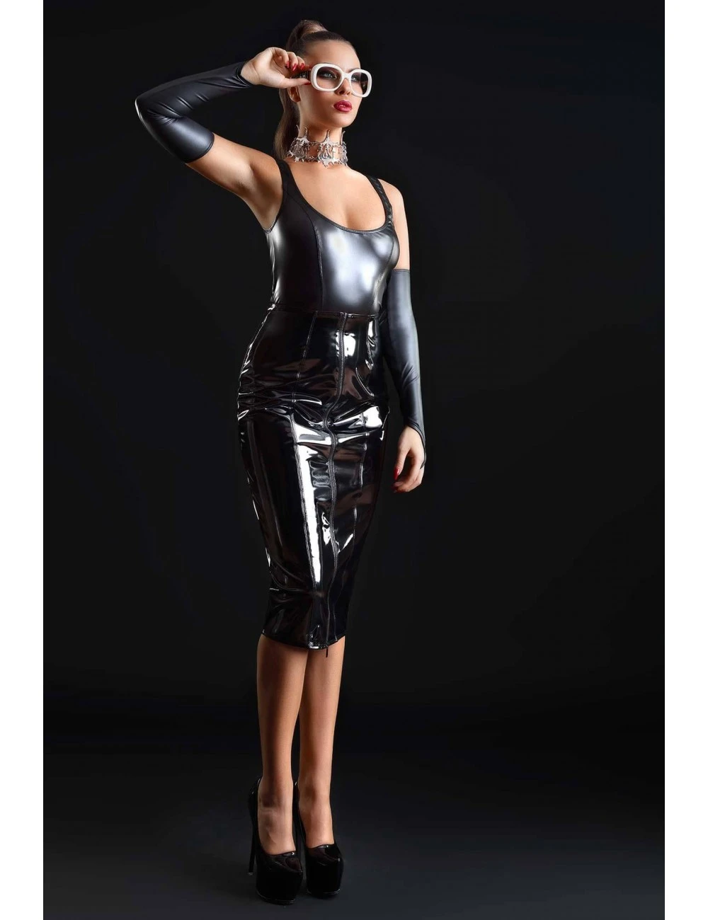 Mitaines en wetlook noir extensibles et confortables.