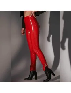 Pantalon en vinyle rouge brillant très confortable avec un imprimé serpent.