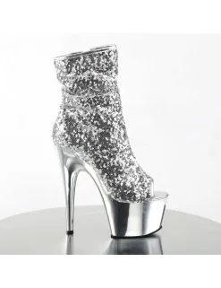 Bottine Plateforme Pole Dance Sequin Argent Pleaser