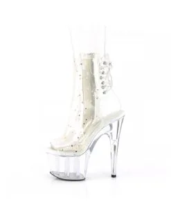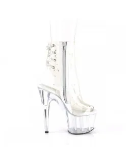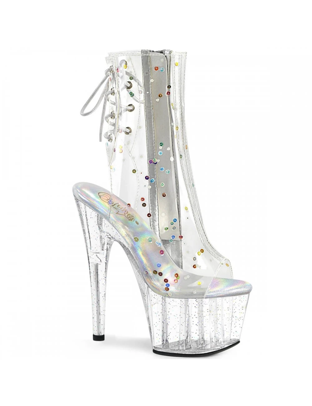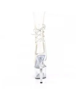 Modèle entièrement transparente de la collection Adore avec ouverture sur le devant et au niveau du talon avec un joli laçage blanc derrière la cheville.