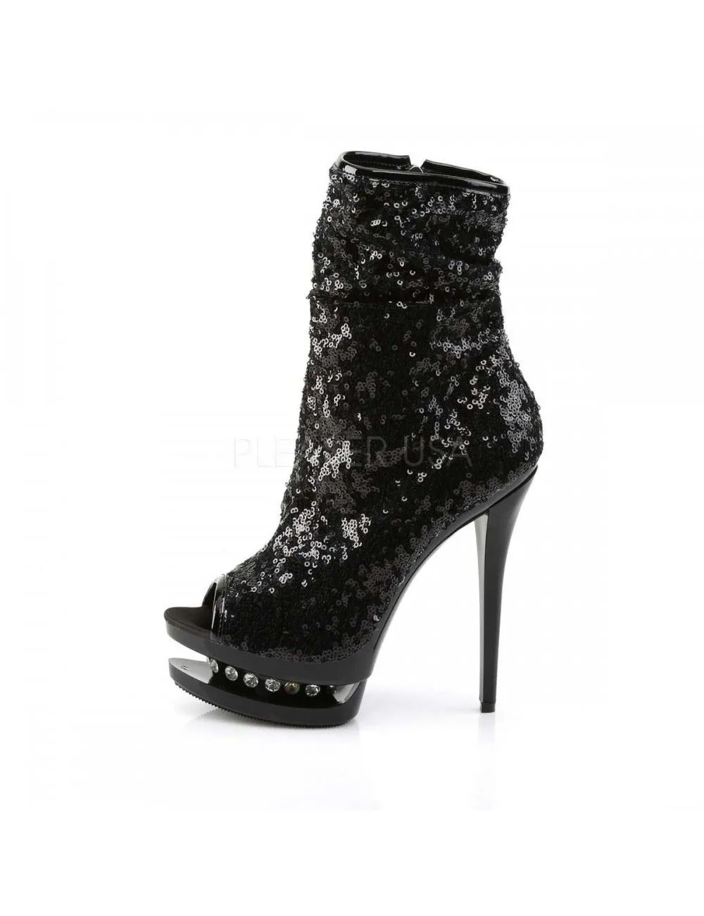 Talons hauts et fins de 15 cm et plateforme de 4 cm. Bout ouvert sur l’avant. Zip de fermeture sur le cĂ´tĂ©.