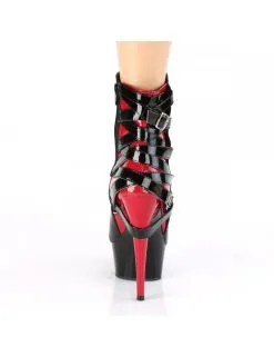 Modèle bicolore noir et rouge avec des sangles au niveau du talon.