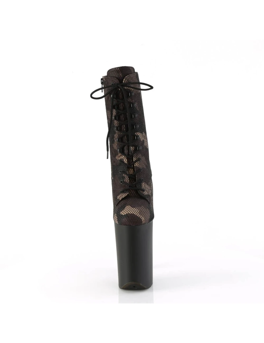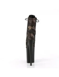 Bottines plateforme look camouflage avec une hauteur de talon incroyable.