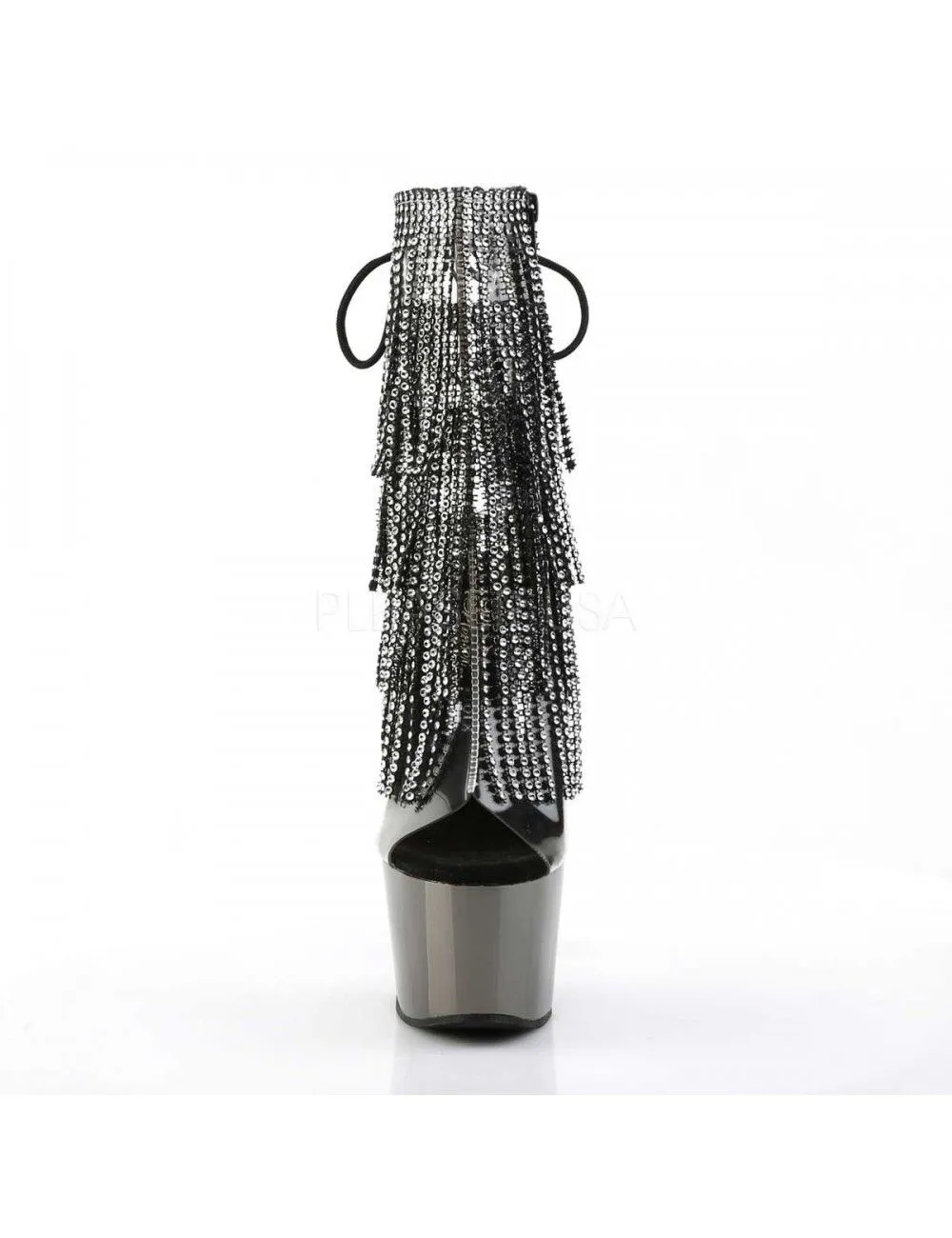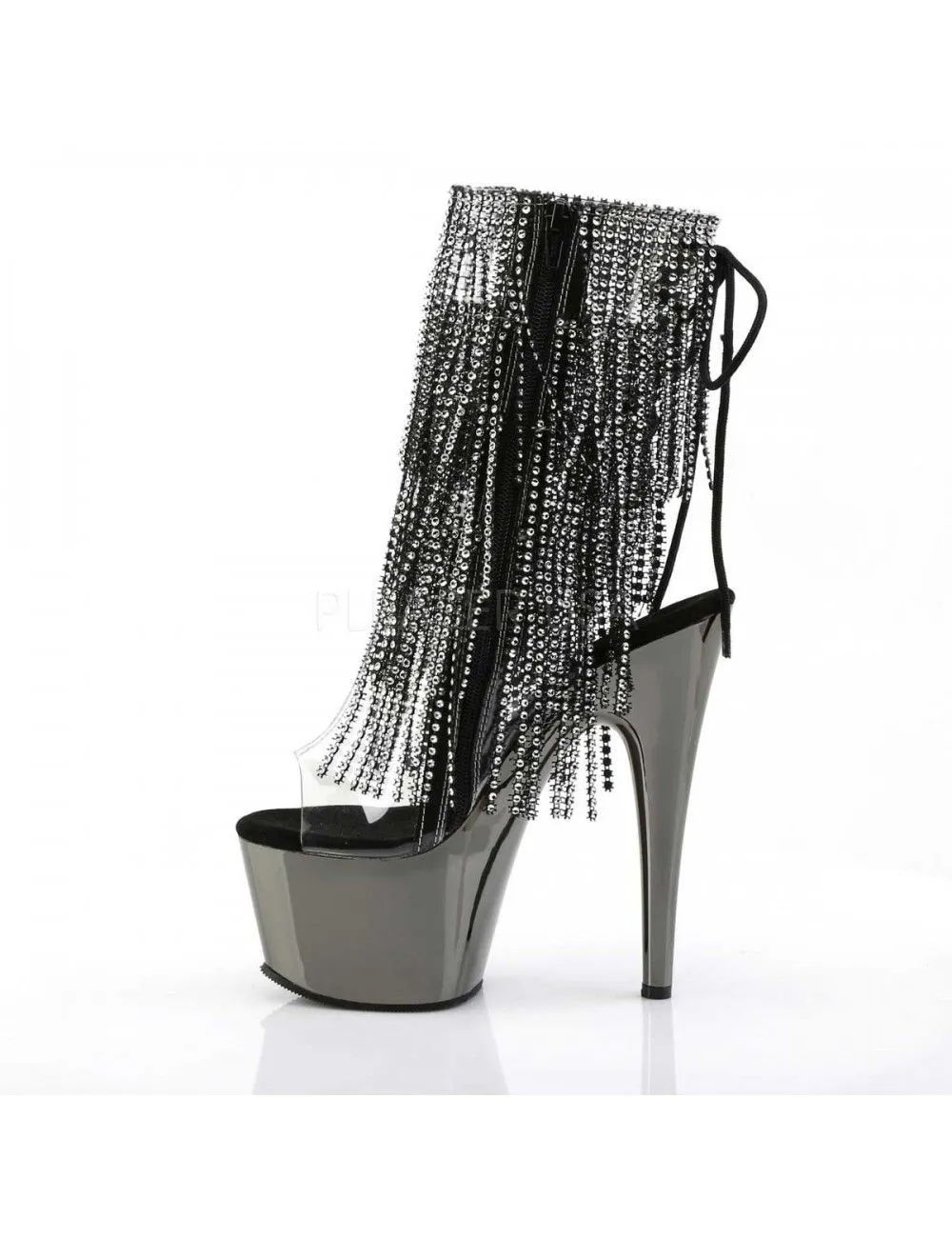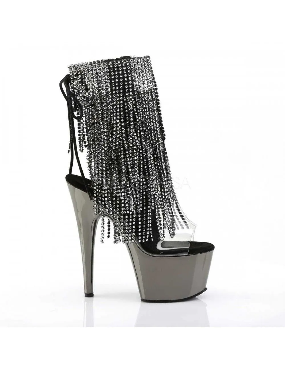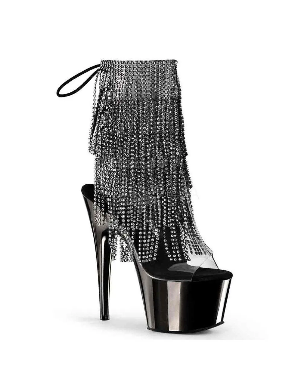 Bottines Plateformes et talon haut avec une frange tout en brillance de strass.