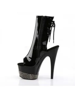 Effet cuir et vinyle très sensuel avec un superbe tapis de strass sur la plateforme
