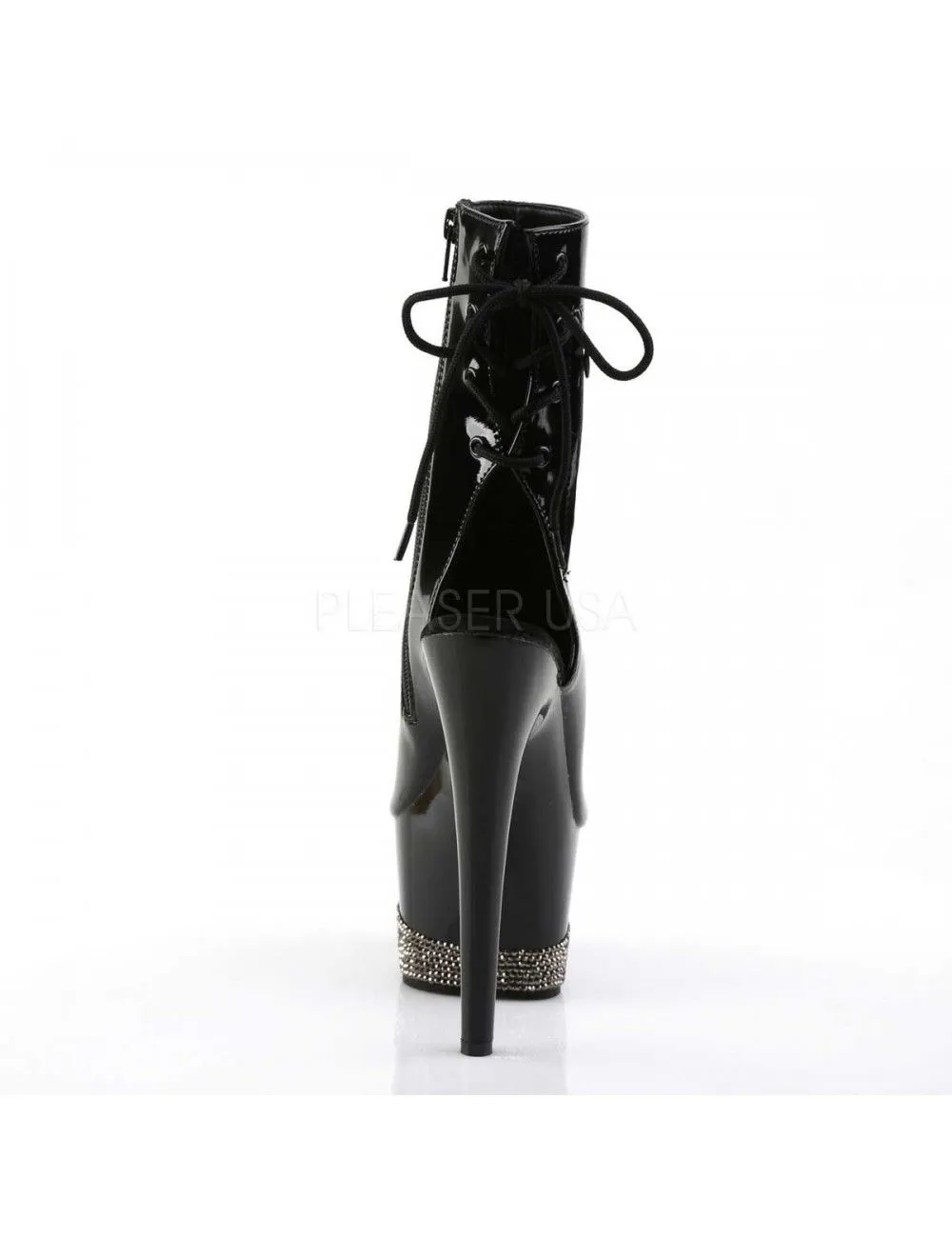 Effet cuir et vinyle très sensuel avec un superbe tapis de strass sur la plateforme