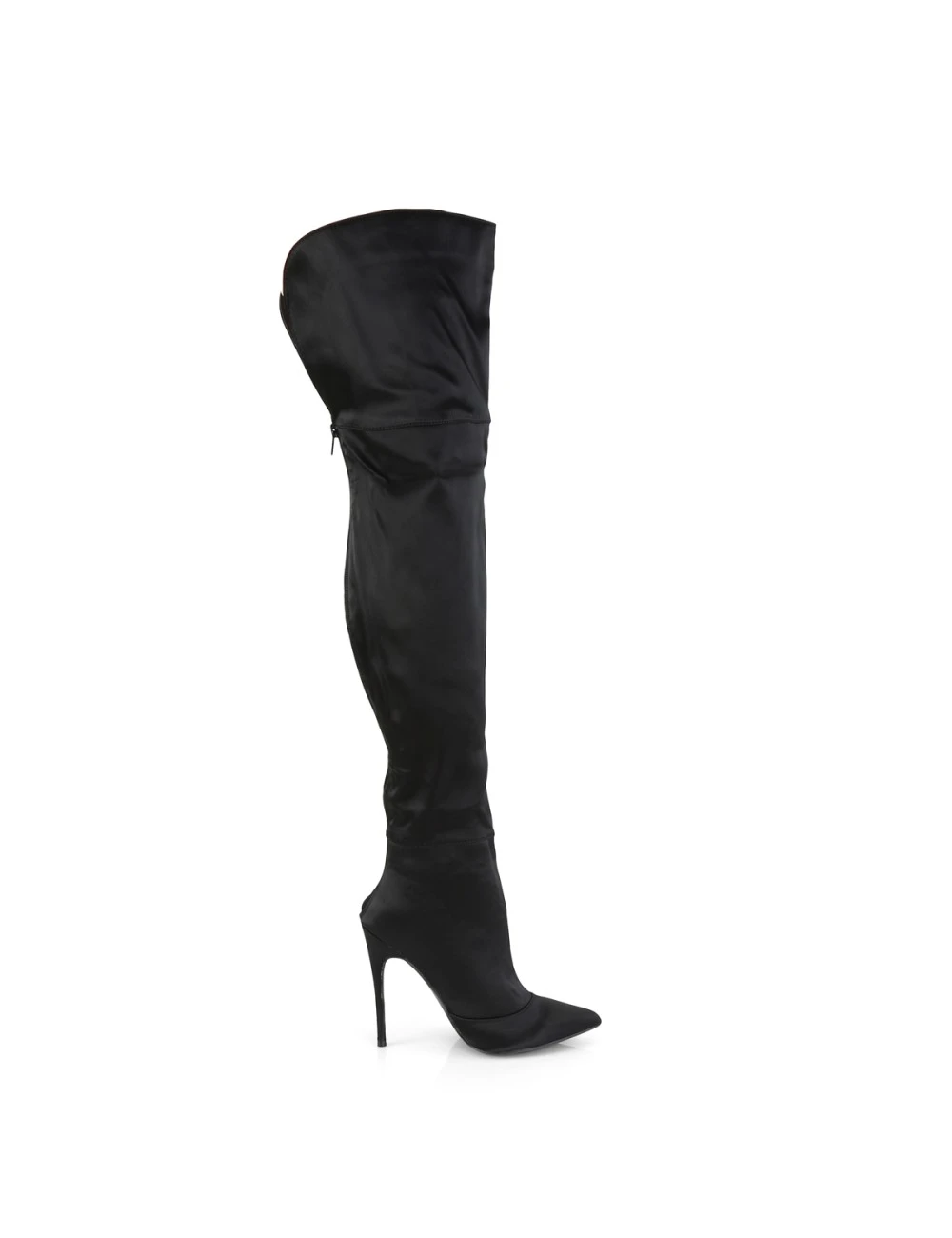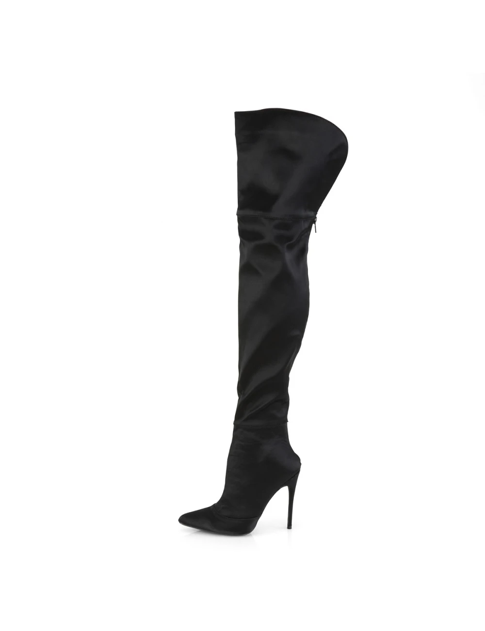 Cuissardes sexy Ă talon aiguilles de plus de 11cm de couleur noir satin.