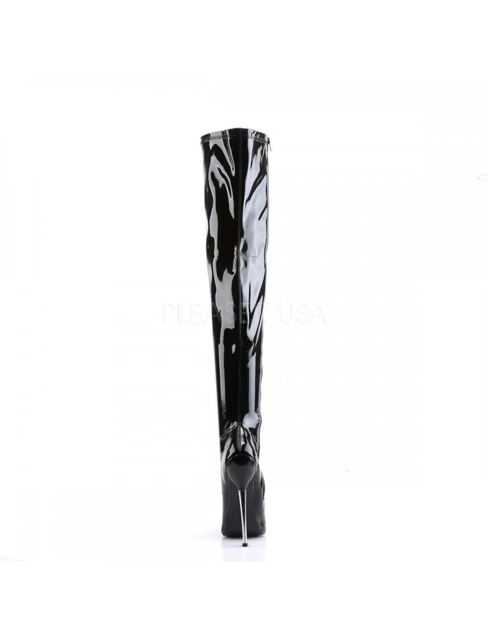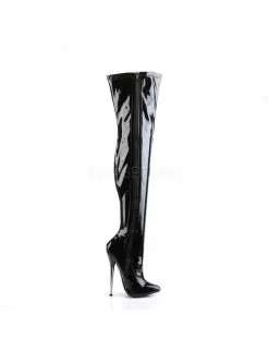 Cuissarde à talon aiguille métallique de 16 cm de haut. Ambiance fetish et look érotique.