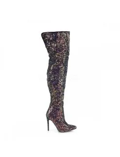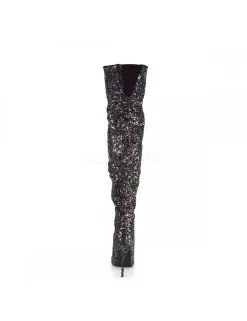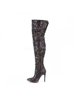 Cuissardes sexy à talon aiguilles de plus de 12cm de couleur noir entièrement pailletées.