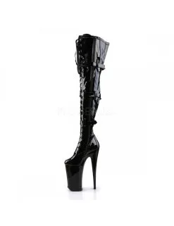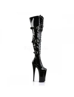 Cuissardes au look extreme avec une hauteur de talon incroyable dépassant les 25 cm.