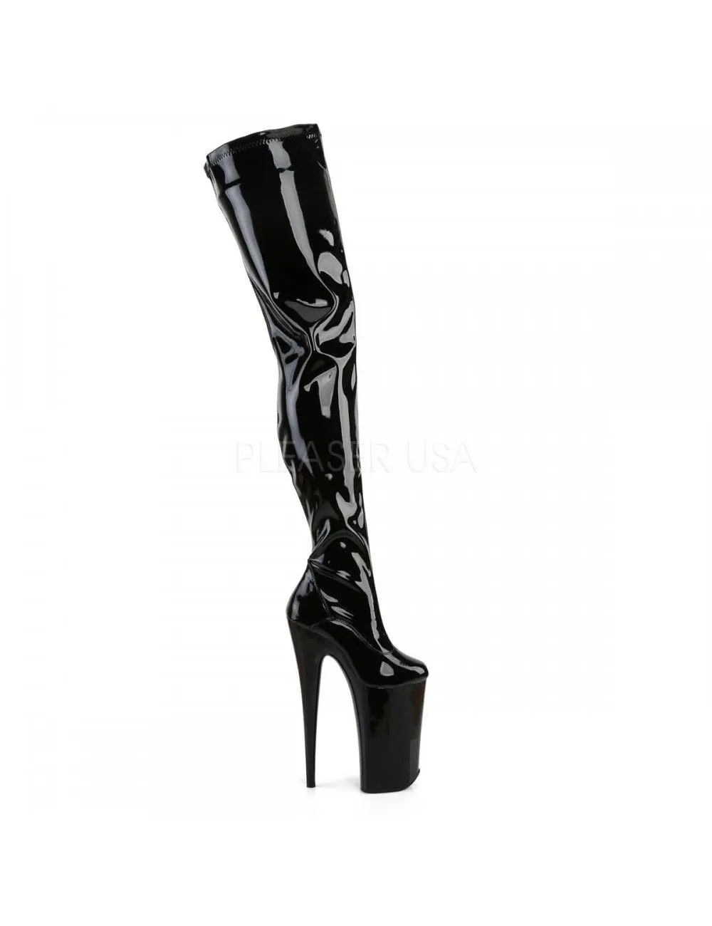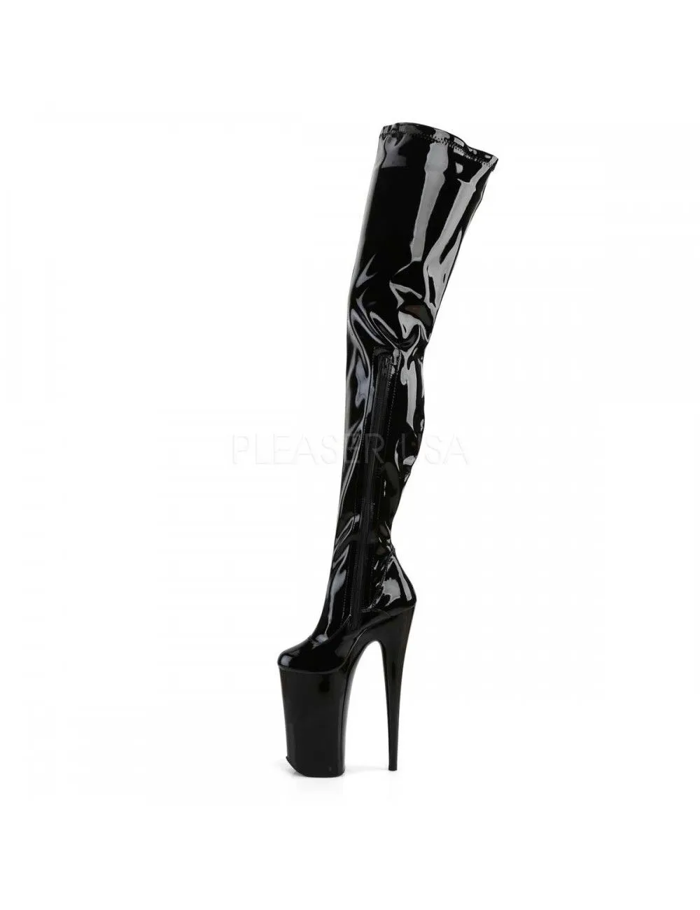 Incroyable cuissarde noir vernis avec zip de fermeture le long de la jambe.