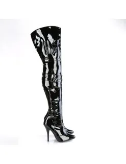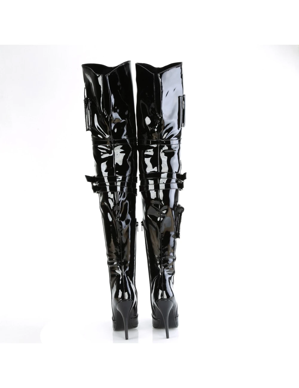Cuisardes noires vernis avec sangle à double boucle et fente arrière.