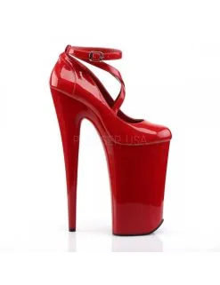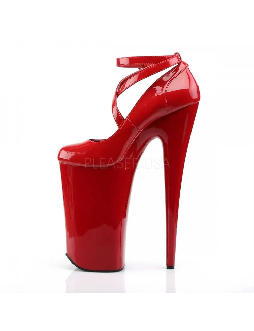 Incroyable escarpins plateformes rouge vernis Ă brides sexy.