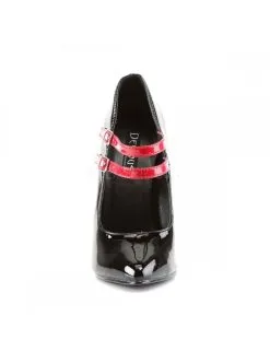 Double bride de couleur rouge sur le dessus du pied et talon rouge.