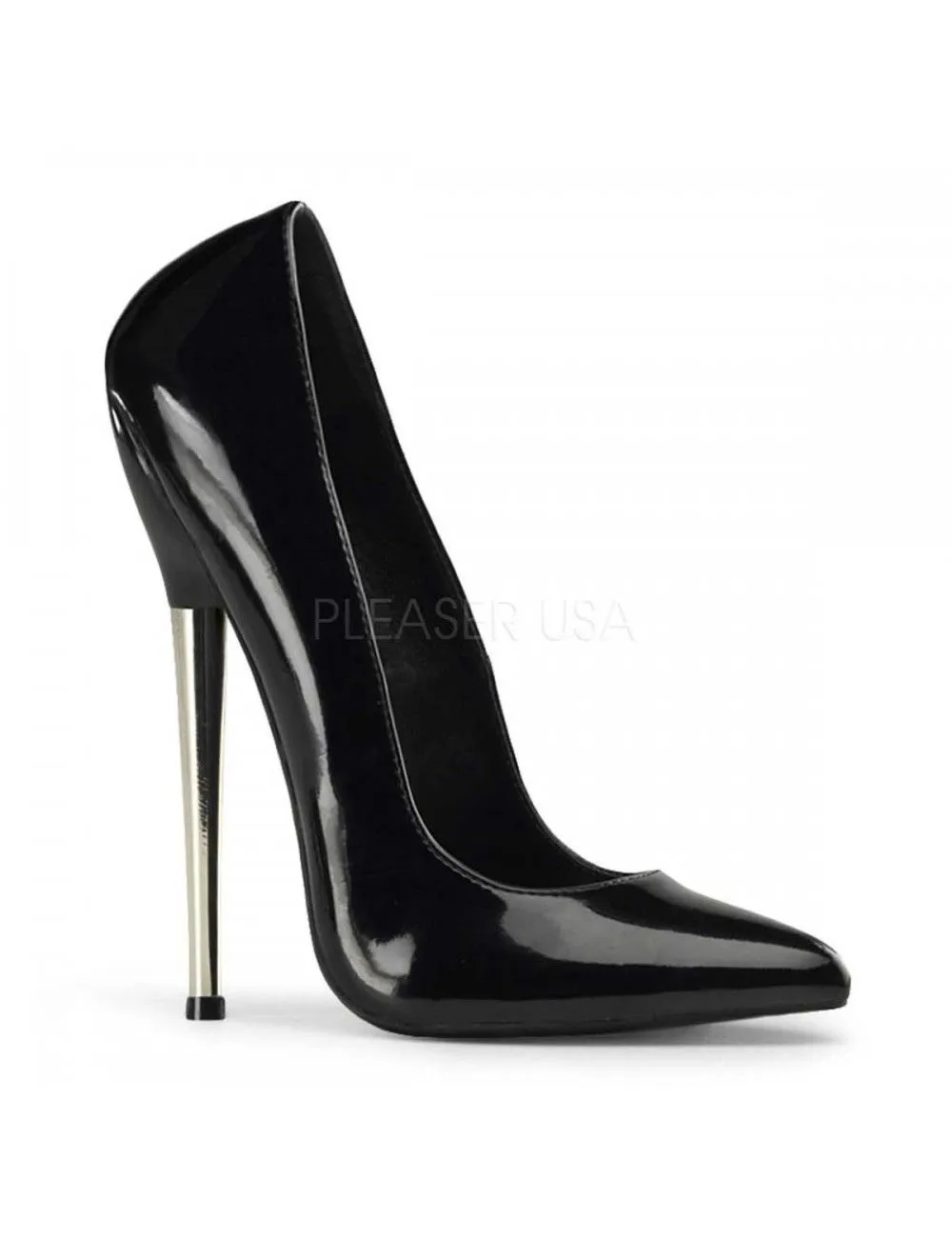 Incroyable escarpin à talon aiguille métallique de 16 cm de haut.