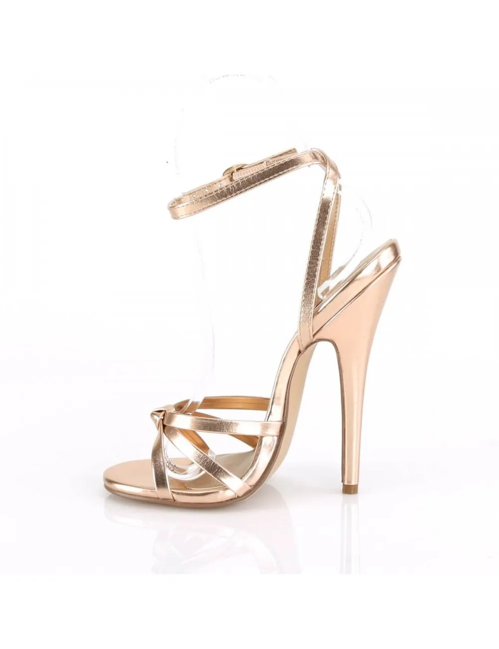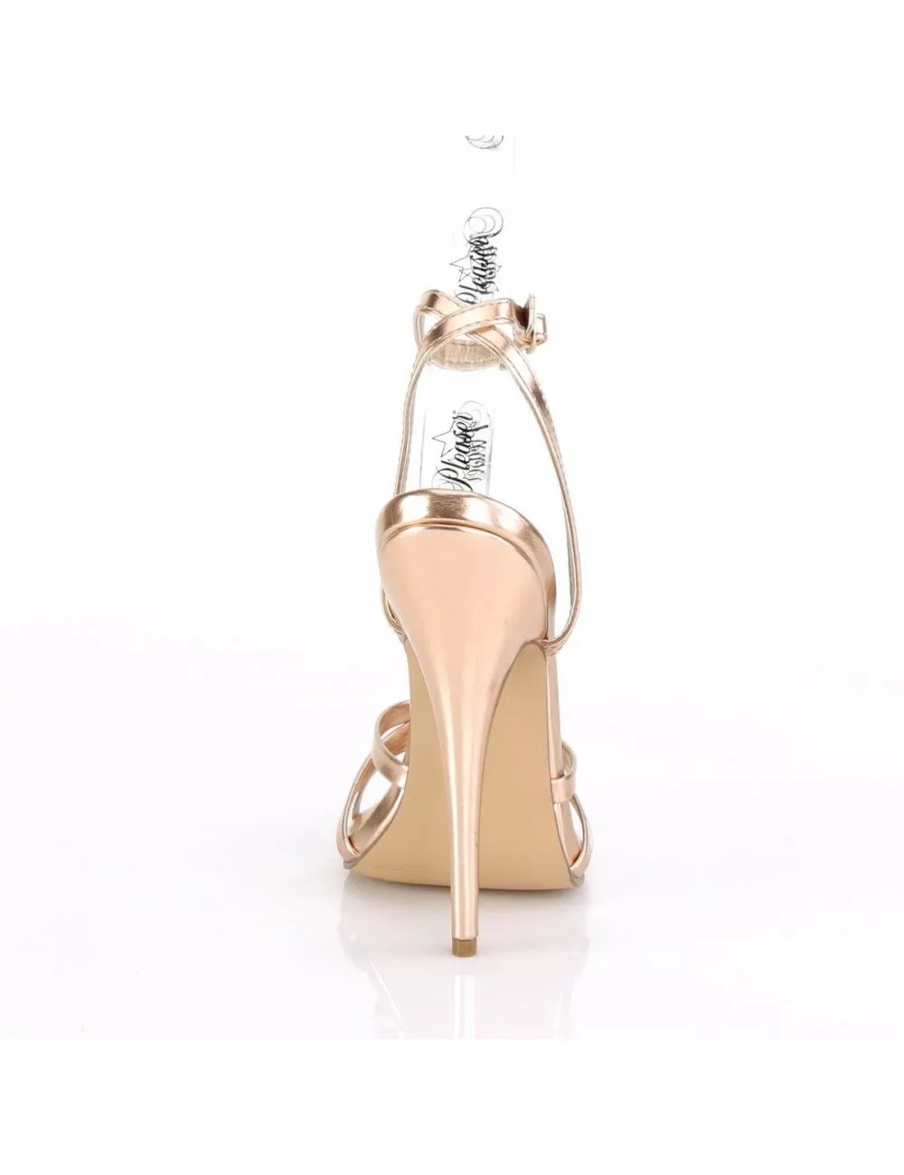 Sandales de couleur or rose brillant avec un très haut talon aiguille.