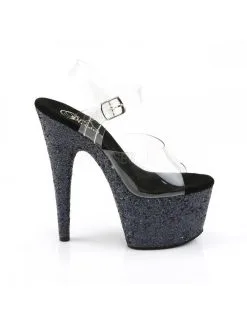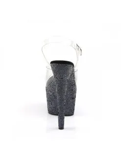 Sandales Plateforme Haut Talon Noir Scintillant Pleaser