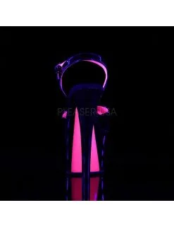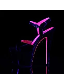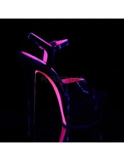 Sandales Plateforme Haut Talon Noires Vernis Rose UV Pleaser