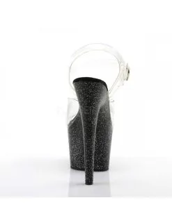 Superbe sandales plateforme noir à bride transparente avec effet pailleté pour un look brillant.