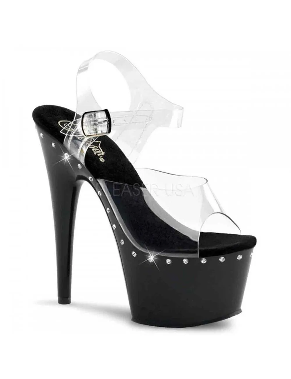 Sandales Plateforme Noir Pole Dance Strass Pleaser