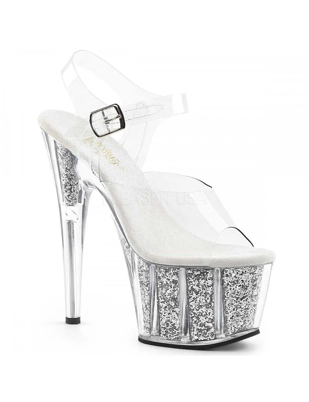 Sandales Plateforme Pailleté Argent Sexy Pleaser