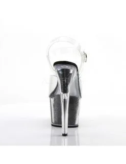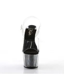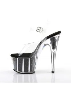 Superbe sandales plateforme à bride avec effet pailleté noir pour un look brillant.