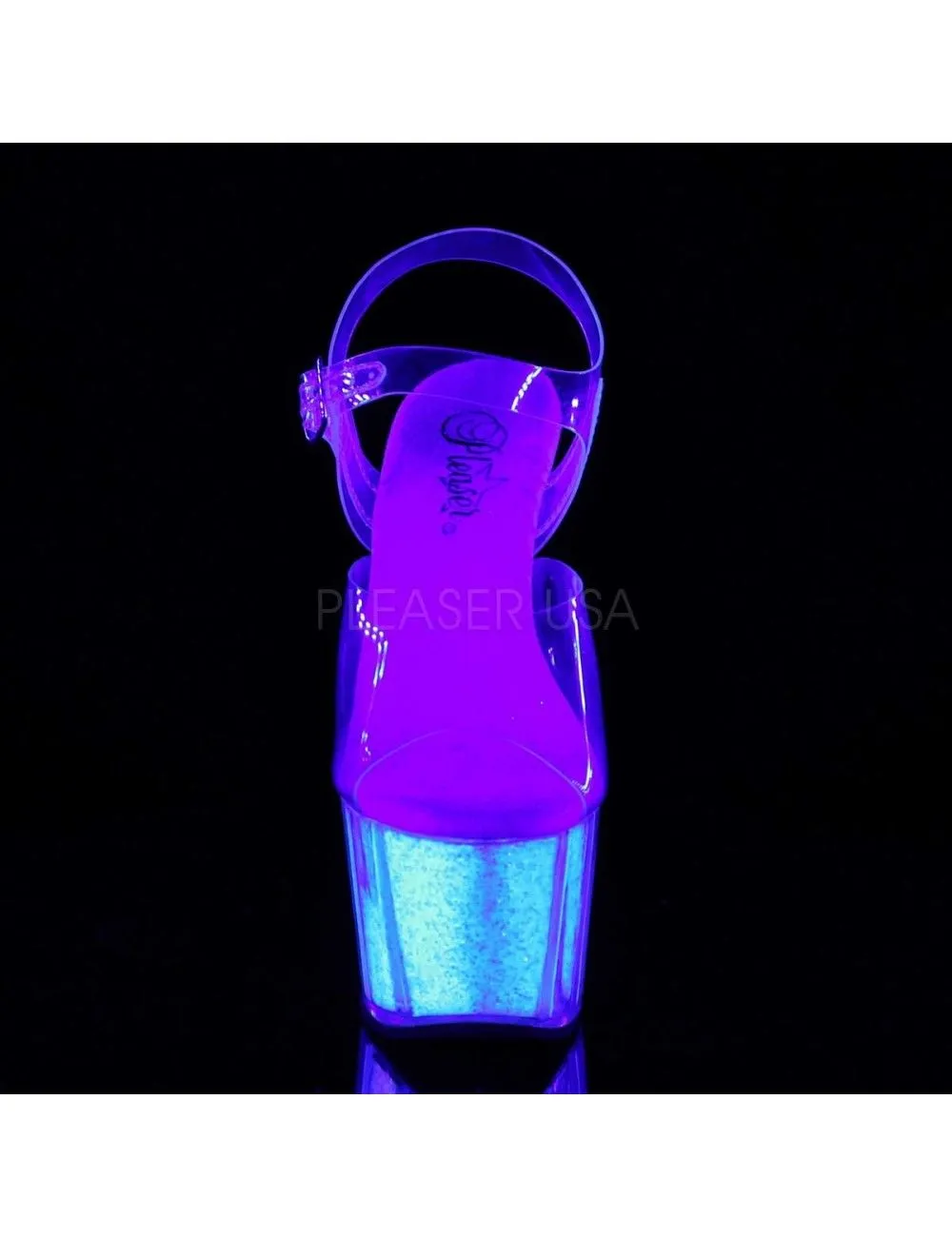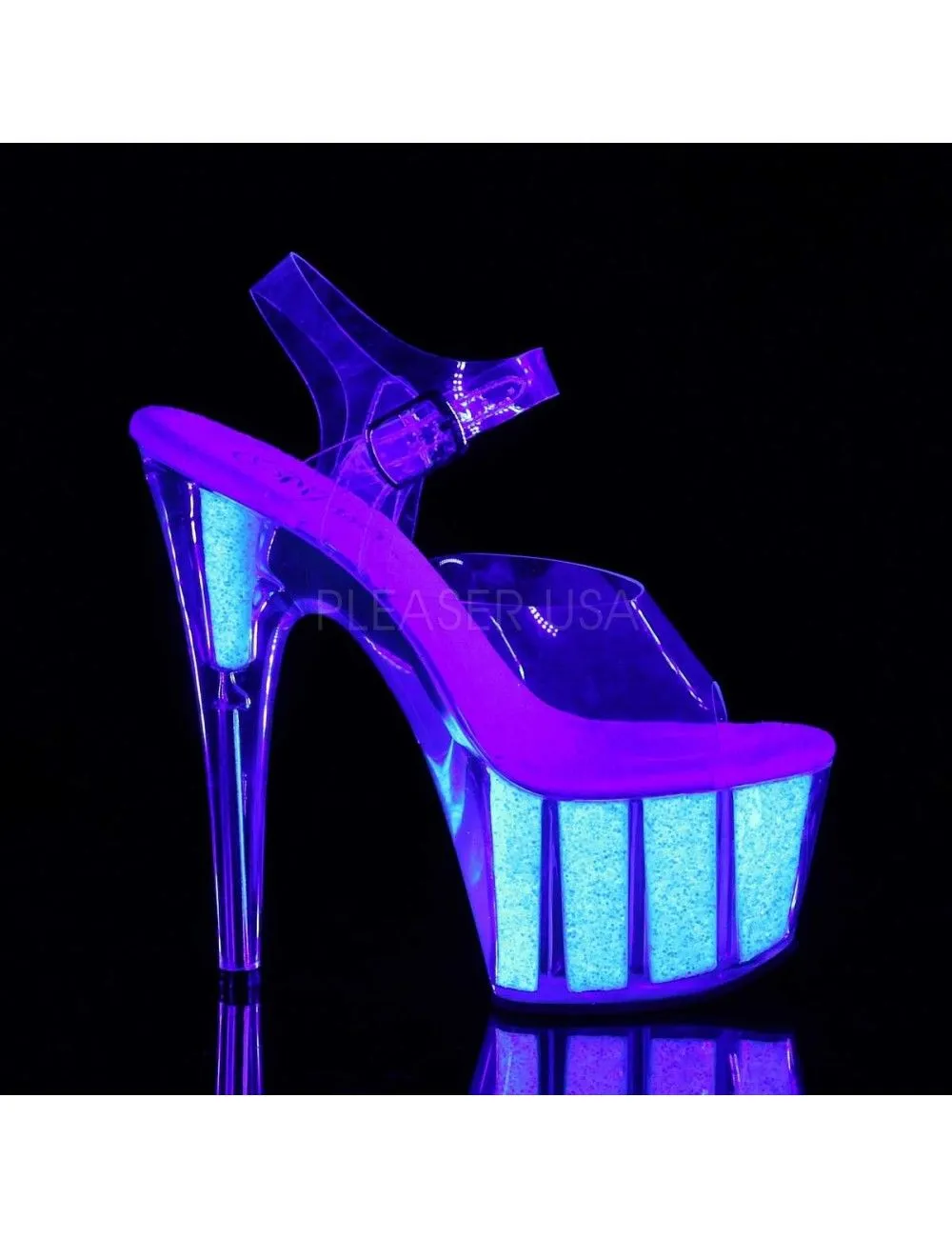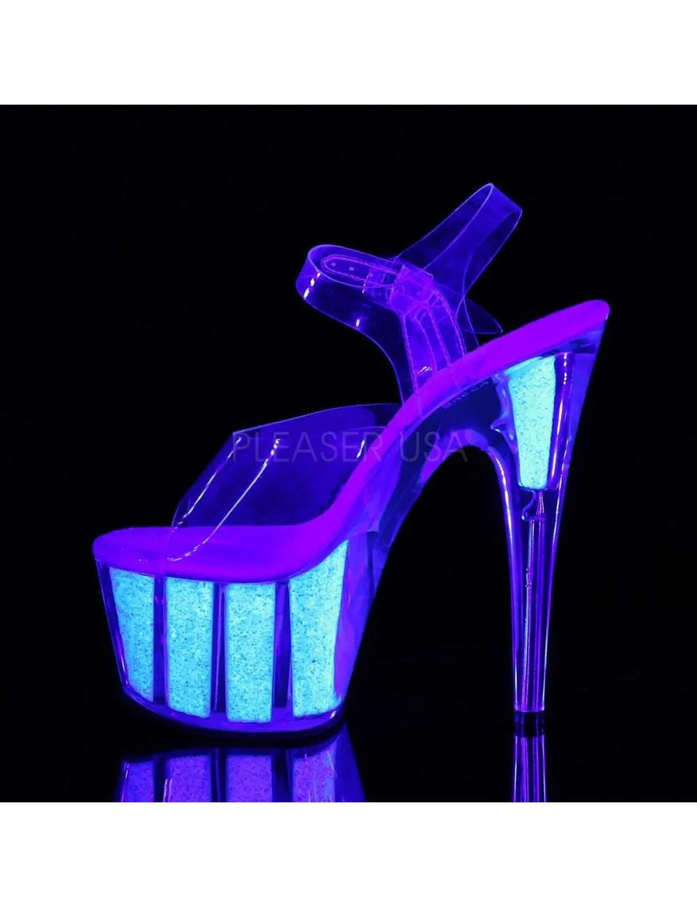 Plateforme spectaculaire avec insertion de paillèttes devenant fluo en réaction à la lumière noire.