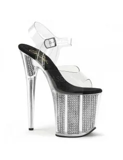 Sandales Plateforme Très haut Talon Argent Strass Pleaser