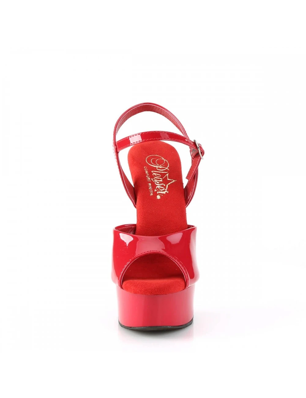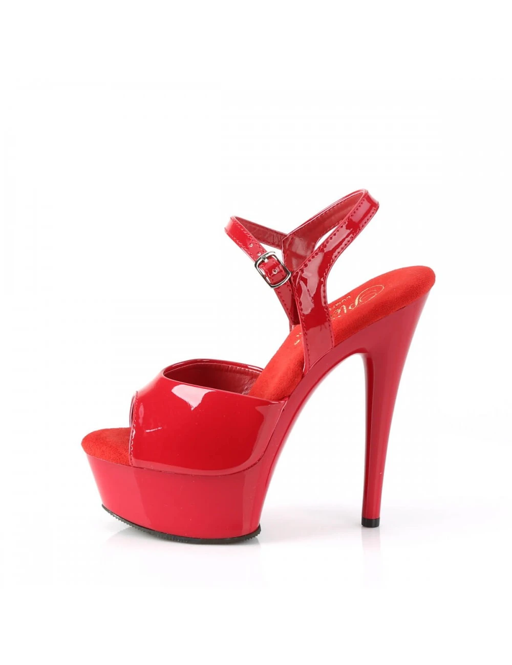 Sandales plateformes rouge vernis avec un confort optimisé sur la largeur et un talon avec une forme ronde et fine.