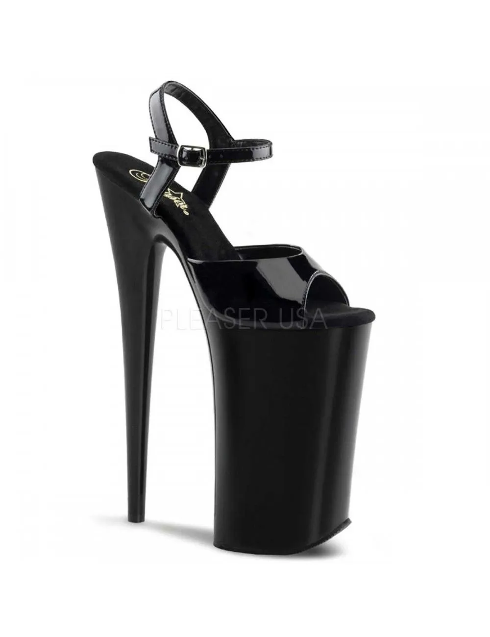Impressionnante hauteur de talon avec plus de 25 cm pour une plateforme de 15.9 cm.