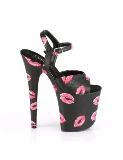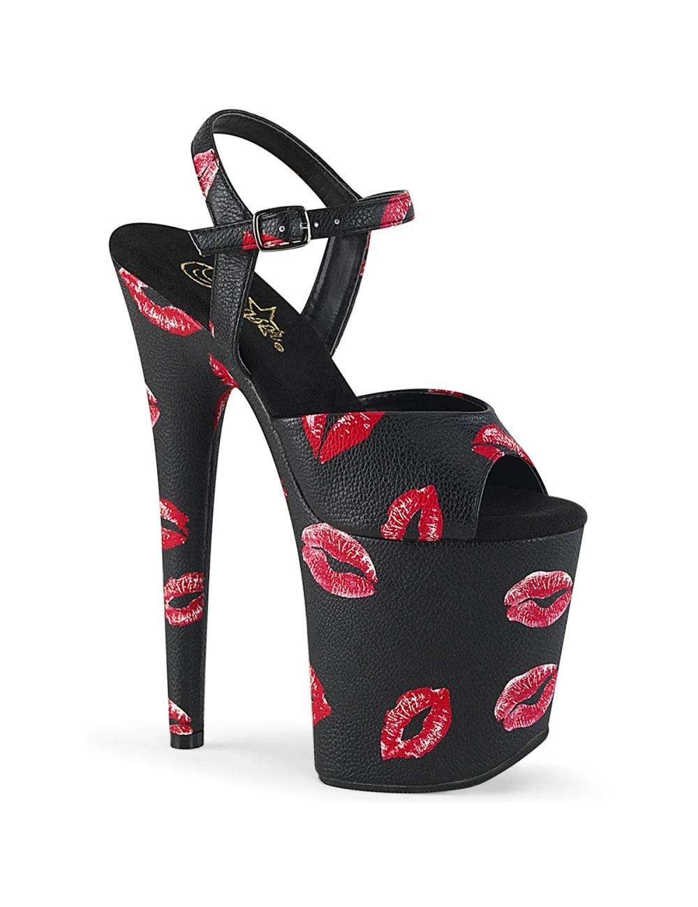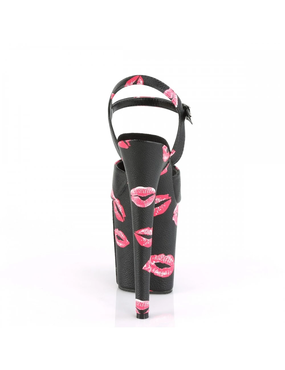 Sandales plateformes imprimé de lèvres avec un très haut talon de 20 cm et une plateforme de 10 cm.