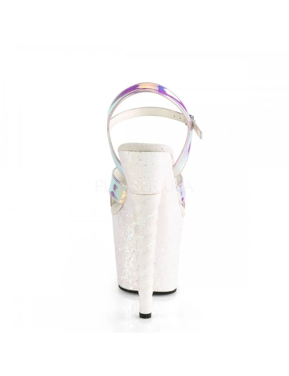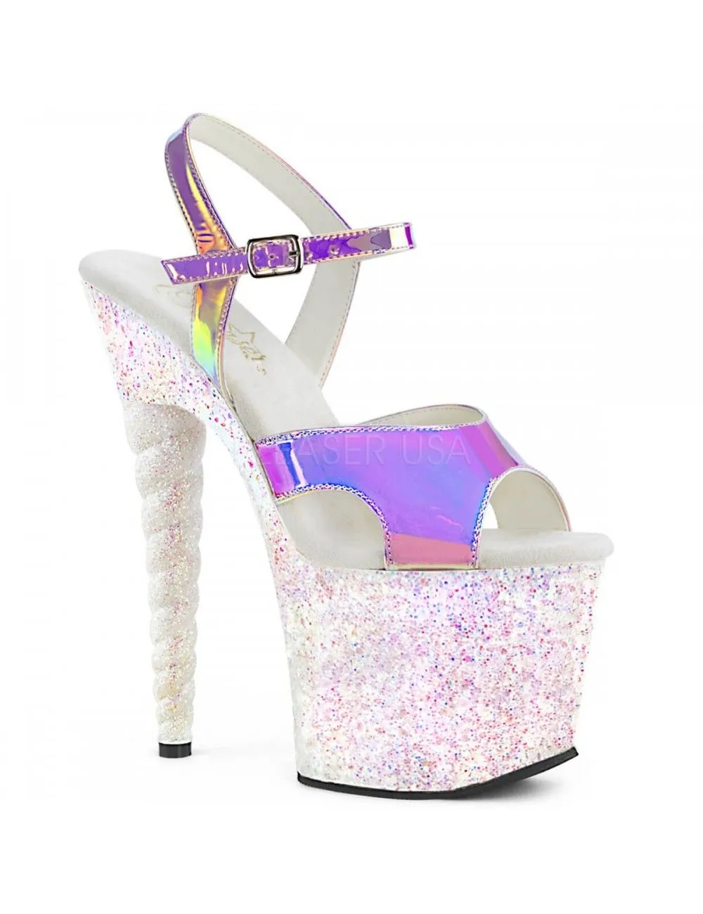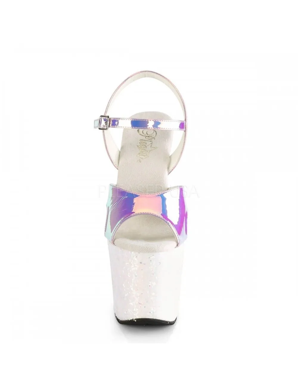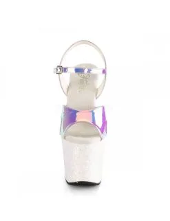 Sandales Plateforme avec bride de cheville décorées de paillettes holographiques.