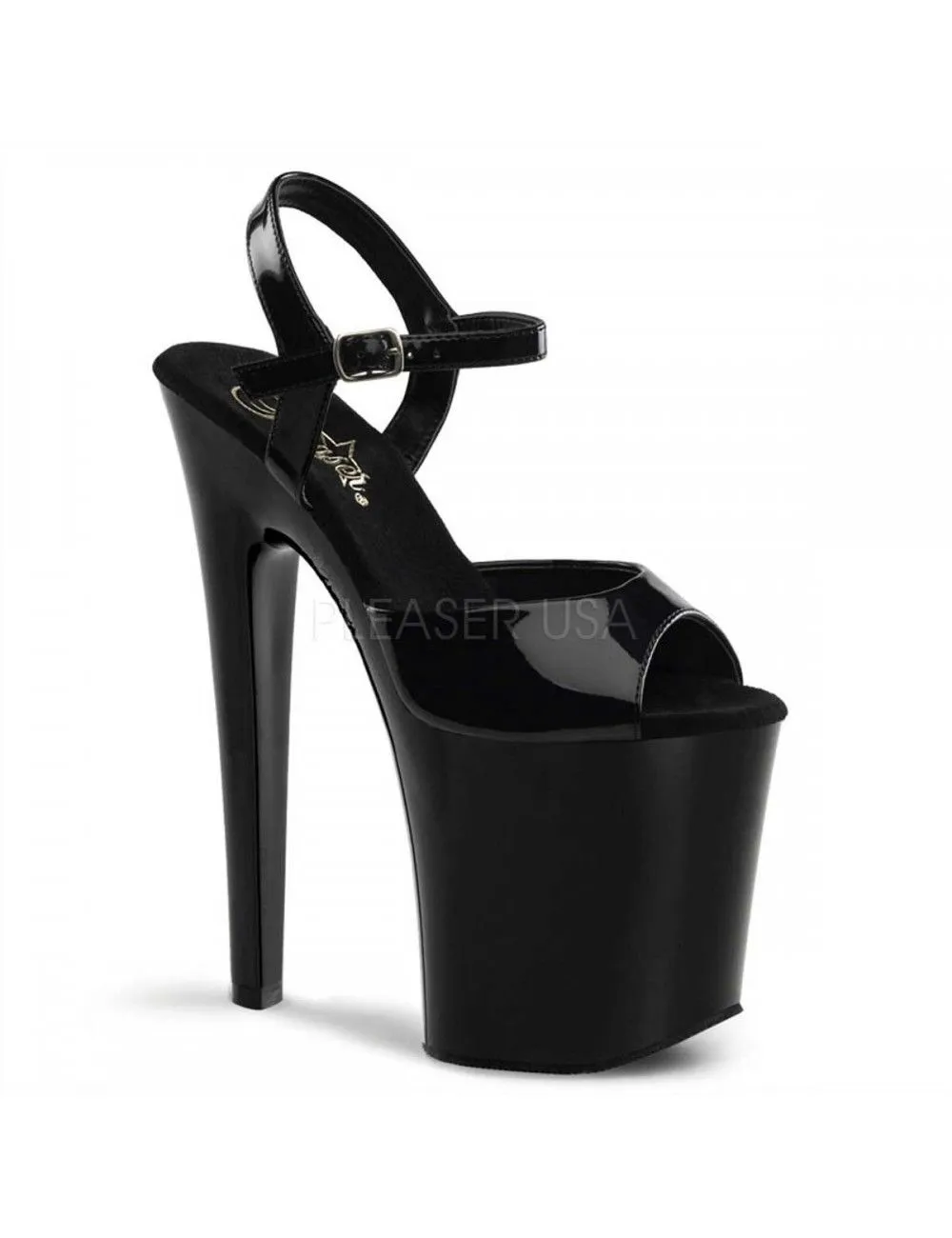 Sandales Plateformes Xtrem Noir Vernis Hauts Talons PLEASER