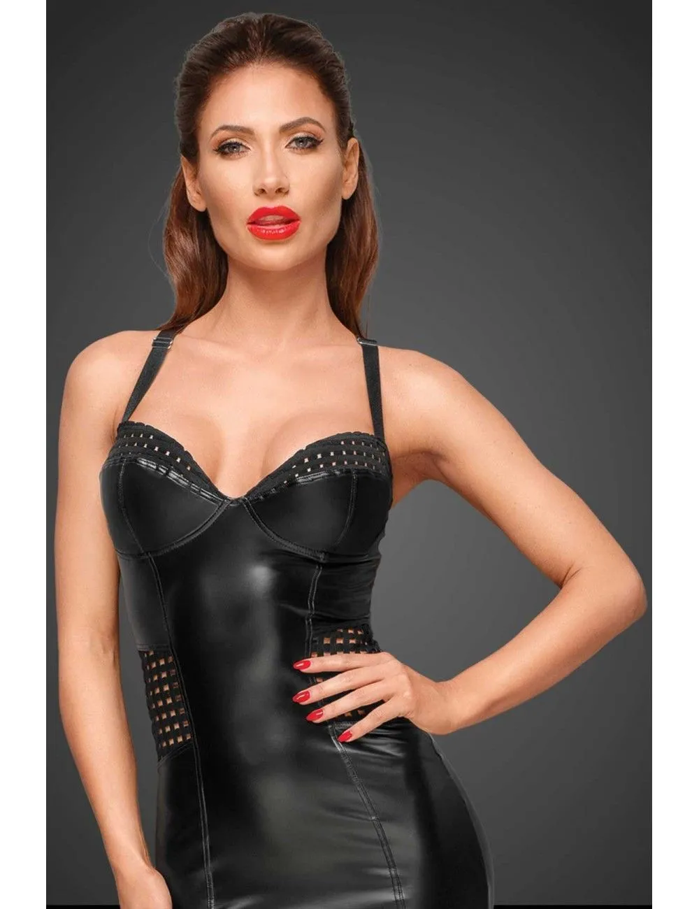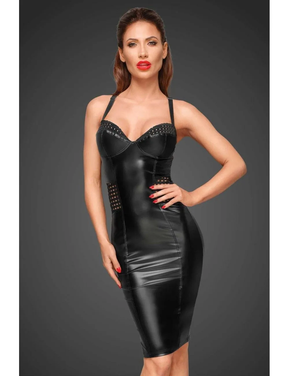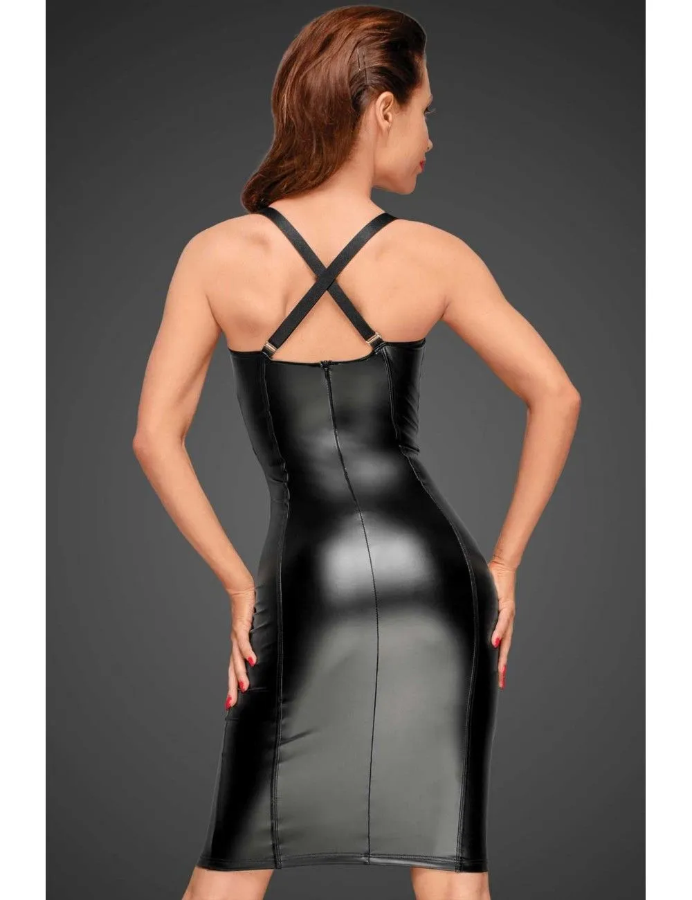 Magnifique robe moulante et longue en wetlook noir pour le plus grand plaisir des yeux.